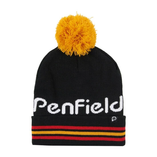 Penfield Black Intarsia Knit Striped Bobble Hat
