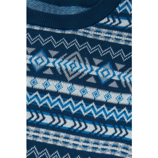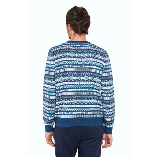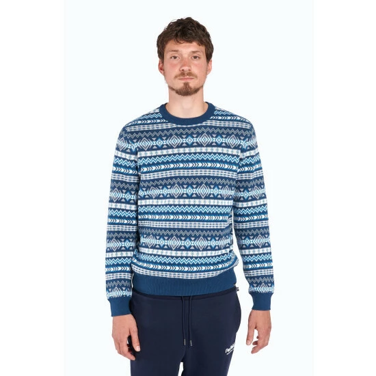 Penfield Blue Geo Jacquard Knit Crew Jumper