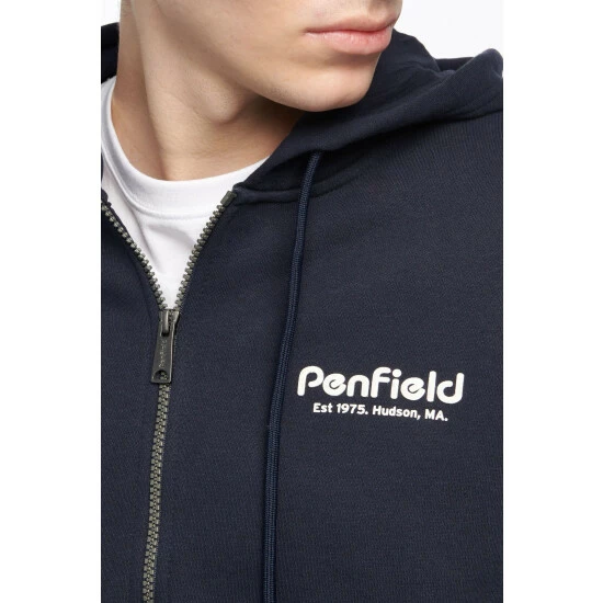 Penfield Blue Hudson Script Zip Thru Hooded Sweatshirt