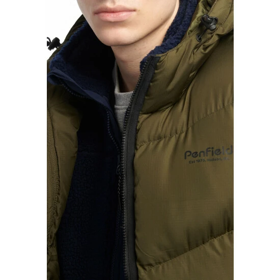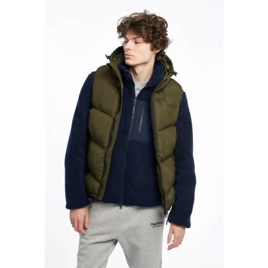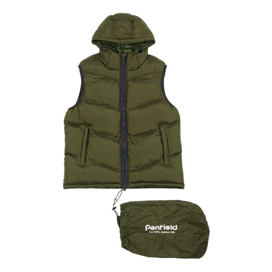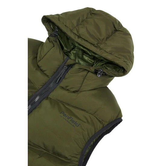 Penfield Green Script Angled Quilt Ripstop Hooded Puffer Gilet