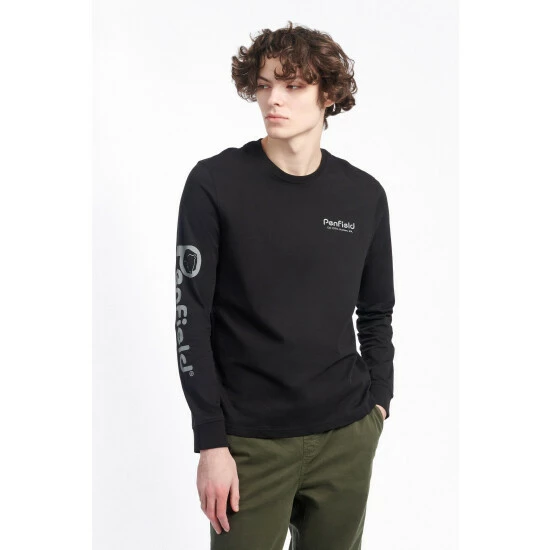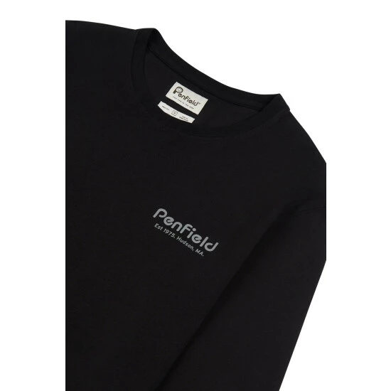 The Penfield Mens Long-Sleeved Bear Graphic T-Shirt features a ribbed crew neck collar and cuffs. Featuring a Hudson script print to the left side of the chest. With a large bear graphic printed on the right sleeve. Inspired by the outdoors, featuring a P Bear hem tab. Crafted in 100% Cotton, Delicate wash at 30°C. Do not tumble dry.